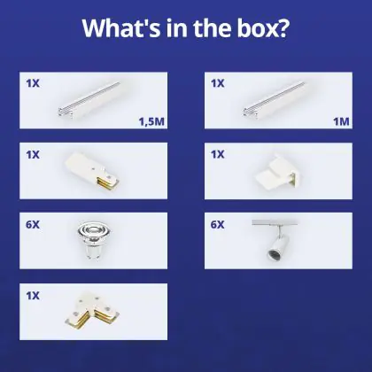 | Herstellername | Complete L shaped 1-Phase Track Set White incl. 6x Spot fixture + GU10 2700K 3W Dim - 1 x 1.5 meters | |