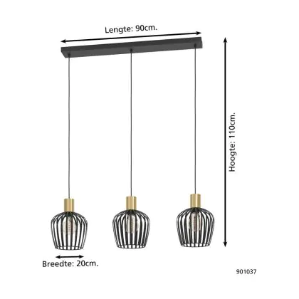 Eglo Pendelleuchte Empoli Stahl Schwarz | IP20 - Geeignet für 3x E27