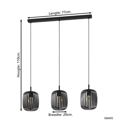 Eglo Pendelleuchte Romazzina Stahl Schwarz | IP20 - Geeignet für 3x E27