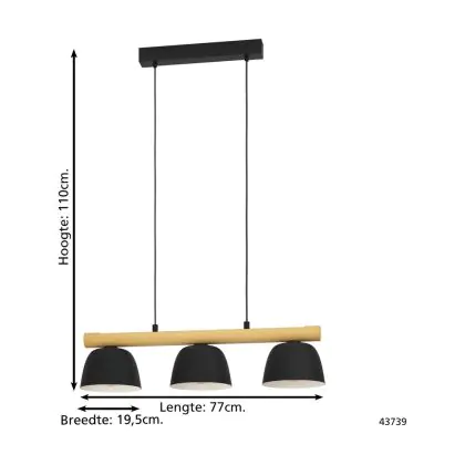 Eglo Pendelleuchte Sherburn Stahl Holz Schwarz Braun | IP20 - Geeignet für 3x E27