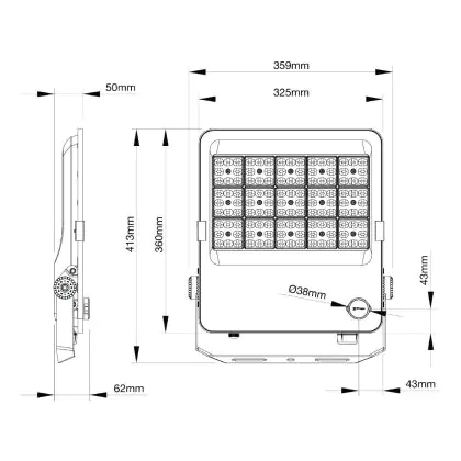 | Herstellername | Budgetlight LED Floodlight ProBeam V2.0 170W 23200lm 60D - 830-840-865 CCT | IP66 - Asymmetrical Type II | |
