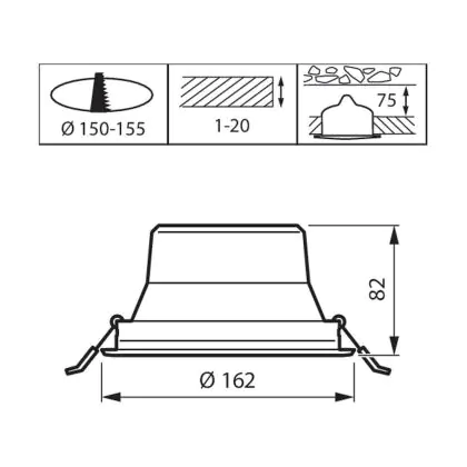 Der Ausschnitt einer Leuchte unterscheidet sich von den Abmessungen der Leuchte selbst und bezeichnet speziell die Grösse der Öffnung in der Decke, die für die sichere Montage der Lichtquelle benötigt wird.