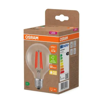 Osram LED Lamps E27 Globe Fadenlampe Klar 2.2W 470lm - 827 | Ersatz Für 40W
