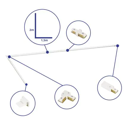 | Nom du fabricant | Complete L shaped 1-Phase Track Set White – 1.5 x 2 meters incl. End Cap, Power Connector and L-Con | |