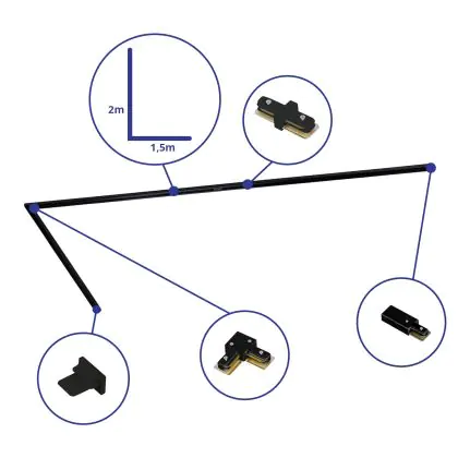 | Nom du fabricant | Complete L shaped 1-Phase Track Set Black – 1,5 x 2 meter incl. End Cap, Power Connector and L -Con | |