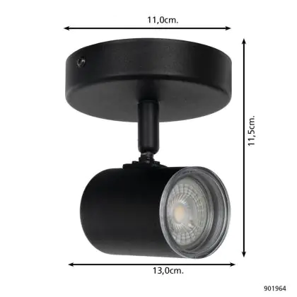 Eglo Plafond Spot Consuma 1 Échantillon Noir | Convient pour GU10