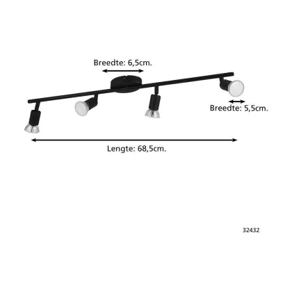 Eglo Plafonnier Buzz-LED Échantillon Noir 4x2.8W 4x250lm - 830 Blanc Chaud | IP20 - Incl. 4x GU10