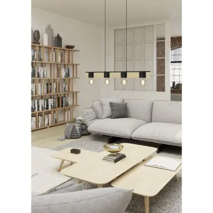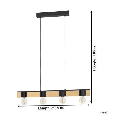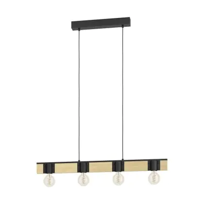 Eglo Suspension Luminaire Bailrigg Échantillon Bois Noir Brun | IP20 - Convient pour 4x E27