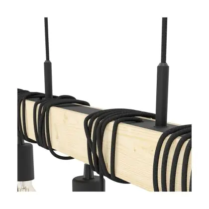 Eglo Suspension Luminaire Townshend Échantillon Bois Noir Brun | IP20 - Convient pour 6x E27