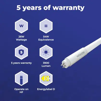 Ce tube LED LEDtube T5 Extreme Electronic (HF) High Output 26W 3900lm - 840 Blanc Froid | 115cm - Remplacement 54W est l’un des produits les plus éconergétiques en remplacement des tubes T5 classiques. Ce tube LED est produit par Budgetlight, vous êtes donc assuré de sa qualité. Avec une puissance de seulement 26 W, ce tube LED Budgetlight a la même intensité lumineuse qu’un tube classique qui consomme 54 W. P>