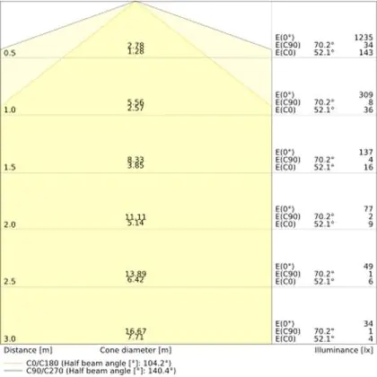 ![]() Le code couleur se compose de l'indice de rendu des couleurs (IRC) et de la température de couleur (Kelvin). Le premier chiffre indique le rendu des couleurs (1 = très mauvais rendu des couleurs, 9 = meilleure authenticité des couleurs). Le deuxième et troisième chiffre indiquent la température de la couleur. Exemple : Le code couleur "830" indique que la lampe a un bon rendu des couleurs (8) et une couleur de lumière blanche chaude (30 = 3000K). |