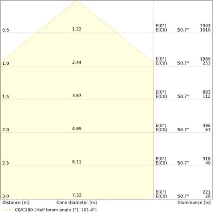• Angle de diffusion: 180 °
