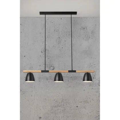 Nordlux Theo 3-Rail Suspension Luminaire Métal et Bois Noir | Convient pour 3x GU10