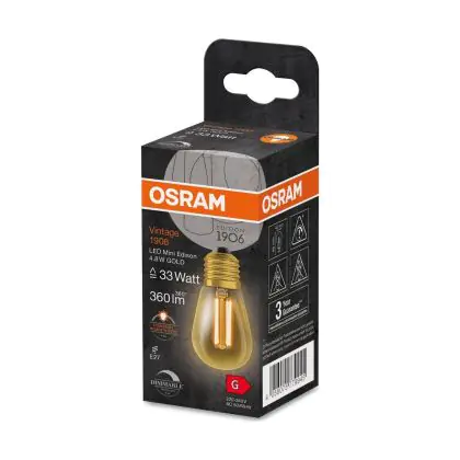 Cette ampoule Osram Vintage 1906 LED E27 Edison Filament Dorée 4.8W 360lm - 822 | Dimmable - Remplacement 40W avec son efficacité lumineuse de lumen par watt vous permettra de profiter d’un éclairage de qualité. Avec sa durée de vie de 15000 heures, vous n’aurez pas à vous soucier de son remplacement avant quelques années.