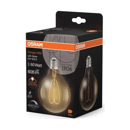Cette ampoule Osram Vintage 1906 LED E27 Globe Filament Dorée 8W 806lm - 922 | Meilleur Rendu De Couleur - Dimmable - Remplacement 60W est l’alternative idéale pour la remplacement de votre ampoule classique de 60 W. La technologie LED intégrée vous offrira de nombreux avantages. Les ampoules à incandescence traditionnelles ont une durée de vie limitée. Cette alternative LED vous permettra de profiter d’un éclairage durable et fiable.