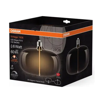 Cette ampoule Osram Vintage 1906 LED E27 Special Filament Smoke 4W 60lm - 818 | Dimmable - Remplacement 15W est l’alternative idéale pour la remplacement de votre ampoule classique de 15 W. La technologie LED intégrée vous offrira de nombreux avantages. Les ampoules à incandescence traditionnelles ont une durée de vie limitée. Cette alternative LED vous permettra de profiter d’un éclairage durable et fiable.