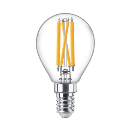 Cette ampoule Philips Master Value LED Lustre E14 Boule Filament Claire 3.4W 470lm - 927 Blanc Très Chaud | Meilleur rendu des couleurs - Dimmable - Équivalent 40W avec son efficacité lumineuse de lumen par watt vous permettra de profiter d’un éclairage de qualité. Avec sa durée de vie de 15000 heures, vous n’aurez pas à vous soucier de son remplacement avant quelques années.